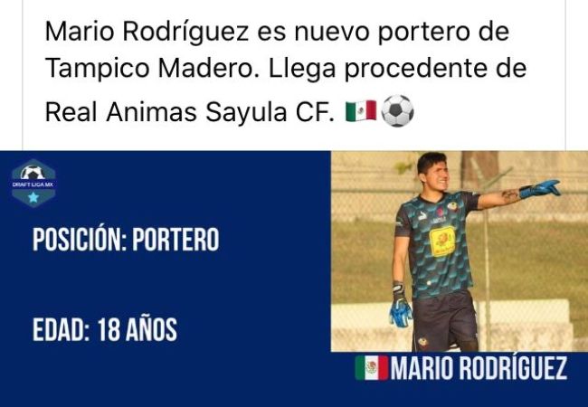 Este miércoles a través de las redes sociales y con información del entrenador de Ánimas de Sayula, Sergio Carlos Torres Ortiz, se confirmó la llegada del portero colimense Mario Rodríguez Patiño, al equipo TM Futbol Club de la Liga de Expansión MX.