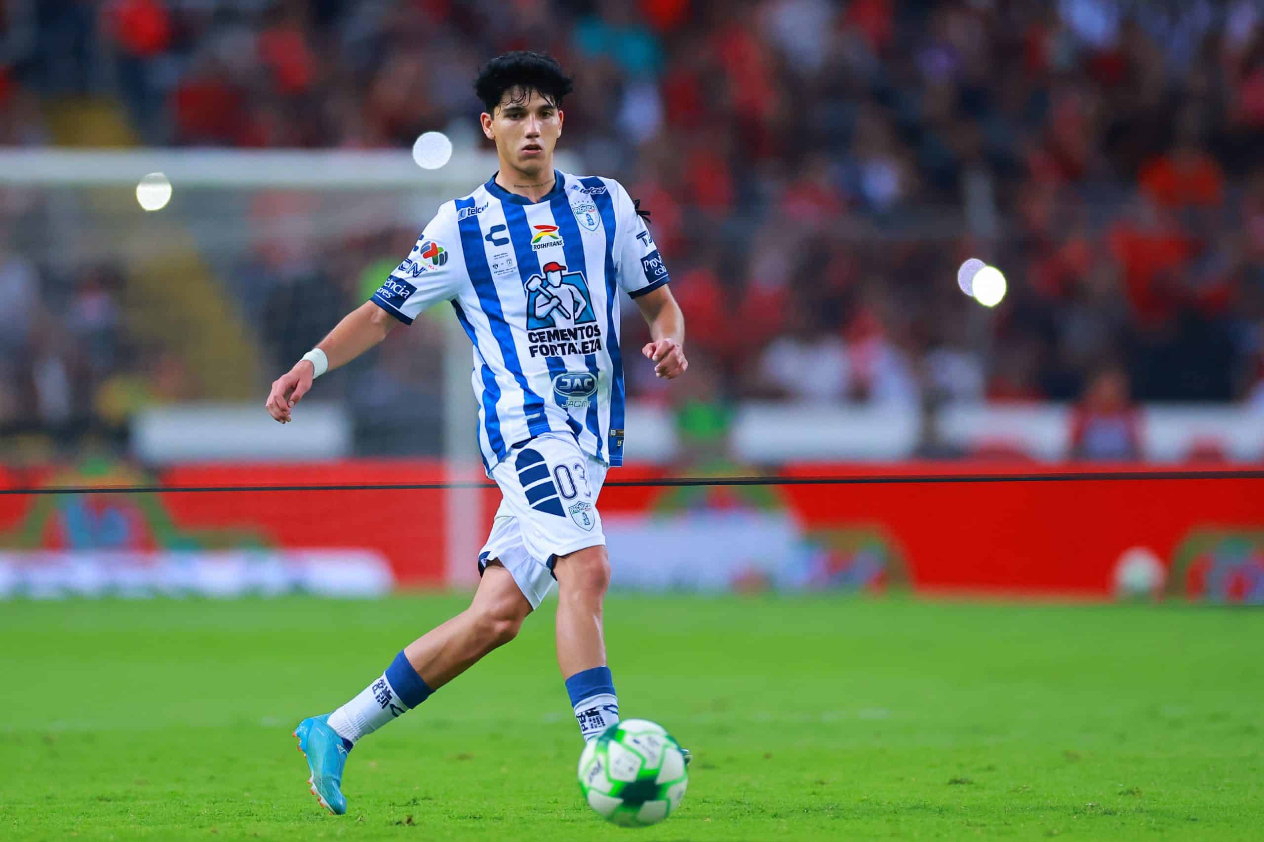 El futbolista colimense de los Tuzos del Pachuca, Kevin Álvarez, levanta la mano por un lugar en el Mundial de Qatar 2022 con la selección mexicana, luego de su actuación de este martes ante el combinado de Jamaica en la Concacaf Nations League.