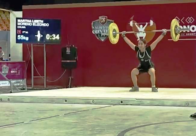 Así sus marcas se ubican en la parte baja de este tablero de competidoras, Martha Lizeth Moreno Elizondo, levanta 60 kilogramos en Arranque, 70 kilogramos en Envión con su total de 130 kgs.