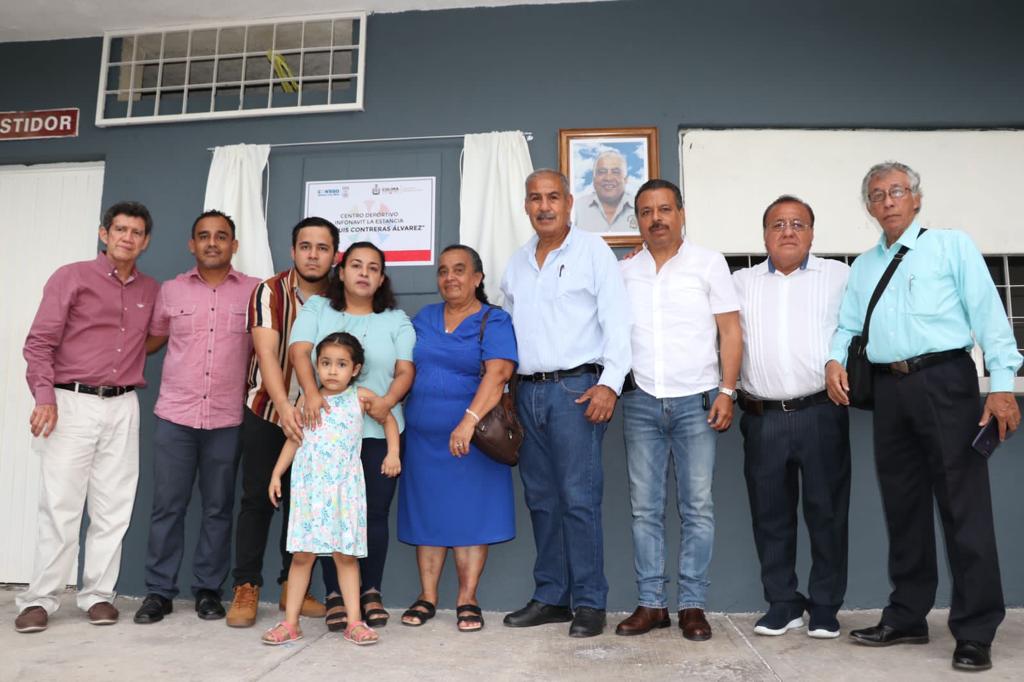 Adolfo Núñez González, secretario de Educación y Cultura del Gobierno del Estado de Colima, participó la noche de este lunes en la develación de la placa del campo de futbol en el Centro Deportivo Infonavit La Estancia, en honor a José Luis Contreras Álvarez (+), quien en vida fue jugador, promotor, formador de jugadores y presidente de la Asociación Estatal de Futbol.