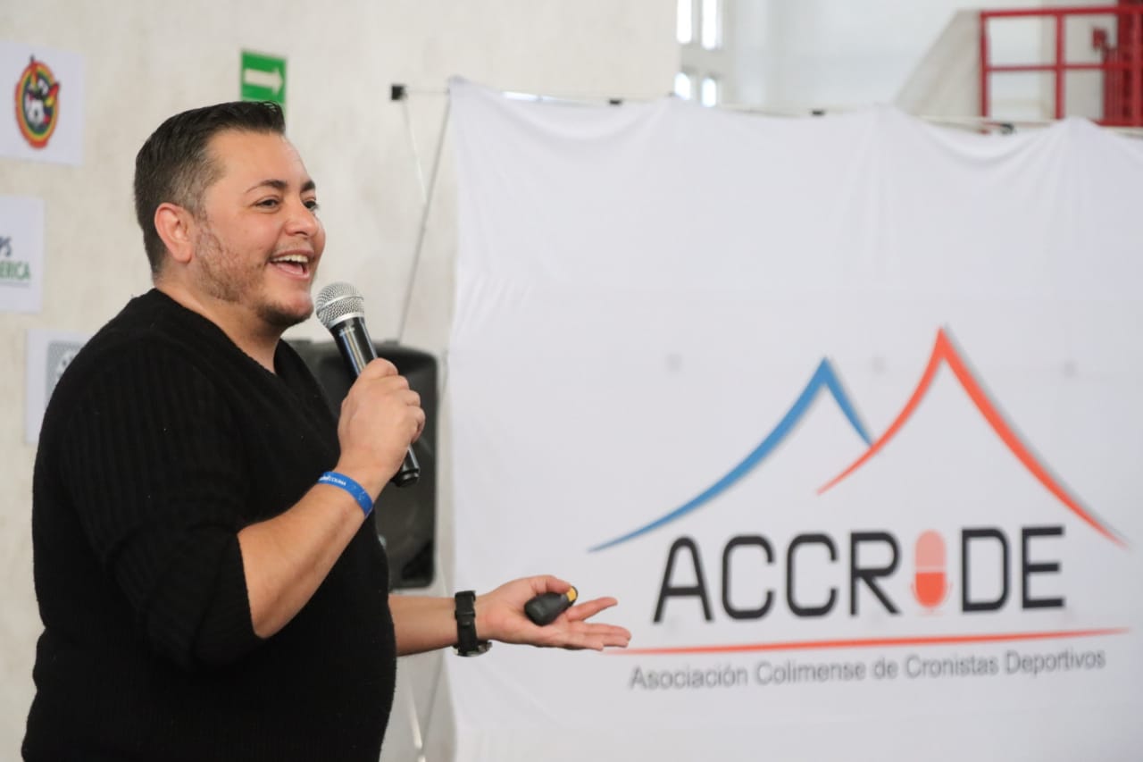 La conferencia que también fue motivacional se llevó a cabo en el Auditorio Multifuncional de la Unidad Deportiva Morelos, donde estuvieron miembros de la Asociación Colimense de Cronistas Deportivos (Accrode), encabezados por su presidente, Óscar Manuel Cortés Evangelista.
