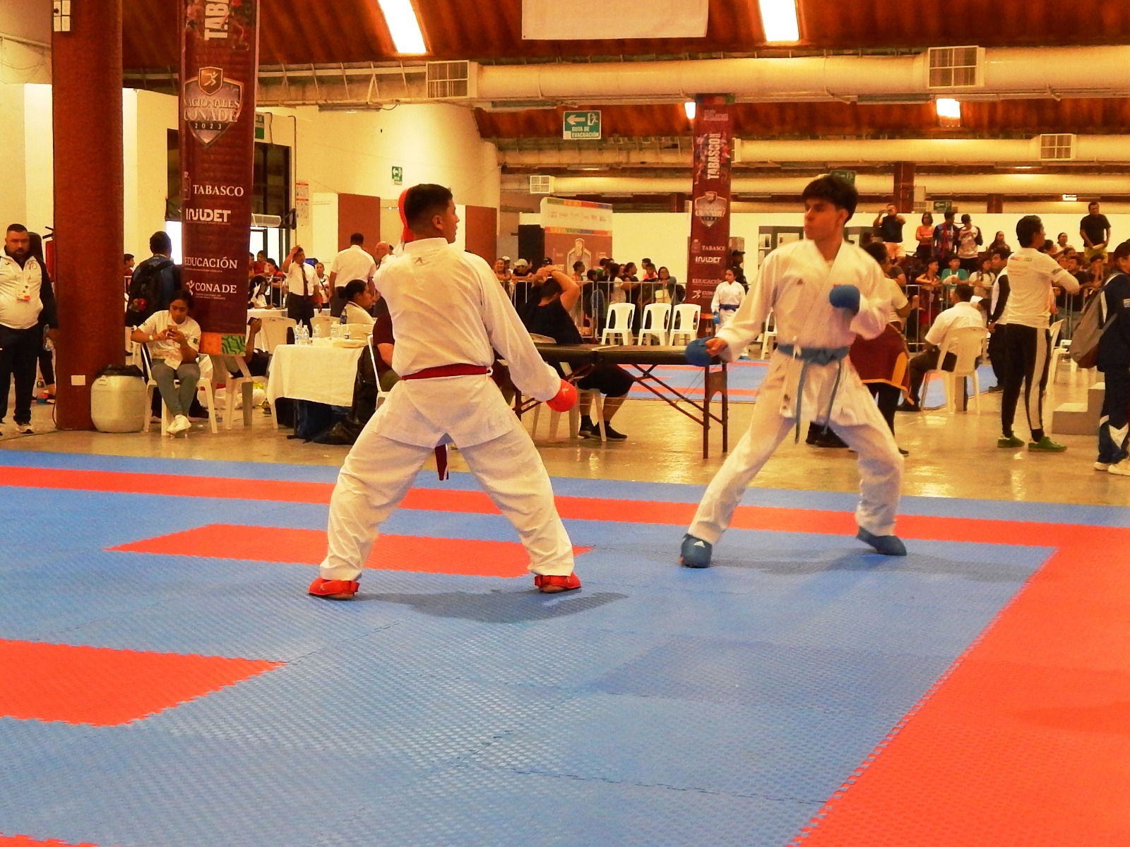 Los karatecas colimenses categoría 16-17 años, Kiyoshi Isao Flores Cruz en +76 kilogramos y Adrián Rivera Rebolledo en los -68 kilogramos, se presentaron este sábado en la ciudad de Villahermosa, Tabasco, sede principal de los Nacionales Conade 2023, la actividad se desarrolla en “La Nave”, ubicada en las instalaciones de Parque Tabasco.