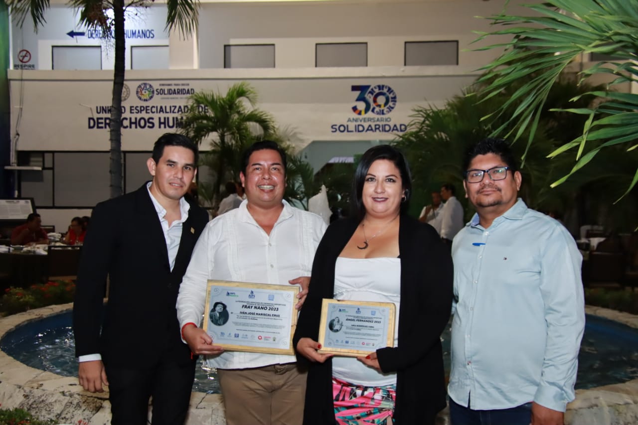 Ania Rodríguez Viera e Iván José Mariscal Cruz recibieron el sábado por la noche los premios Ángel Fernández por más de 5 años de trayectoria en la crónica deportiva, y Fray Nano (más de 20 años), respectivamente, en un evento que se llevó a cabo durante el Congreso y Asamblea de la Federación Mexicana de Cronistas Deportivos (Femecrode), en Playa del Carmen, Quintana Roo.