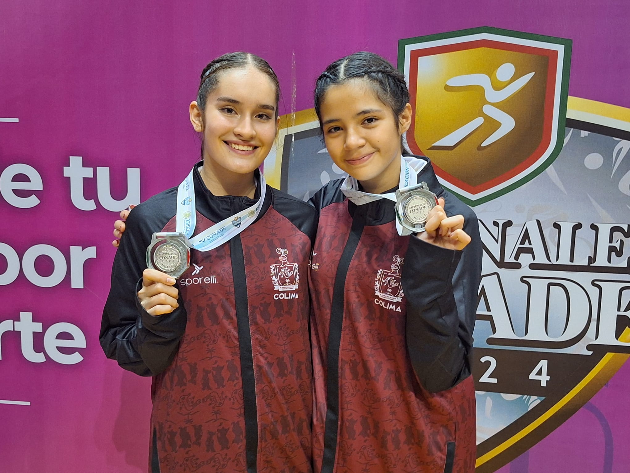 Las gimnastas Mariana Gil y Fabiola Ochoa dieron a Colima la tercera medalla de plata de los Nacionales Conade 2024, fue en la disciplina de Gimnasia de Trampolín por equipos en la categoría 15-16 años femenil.