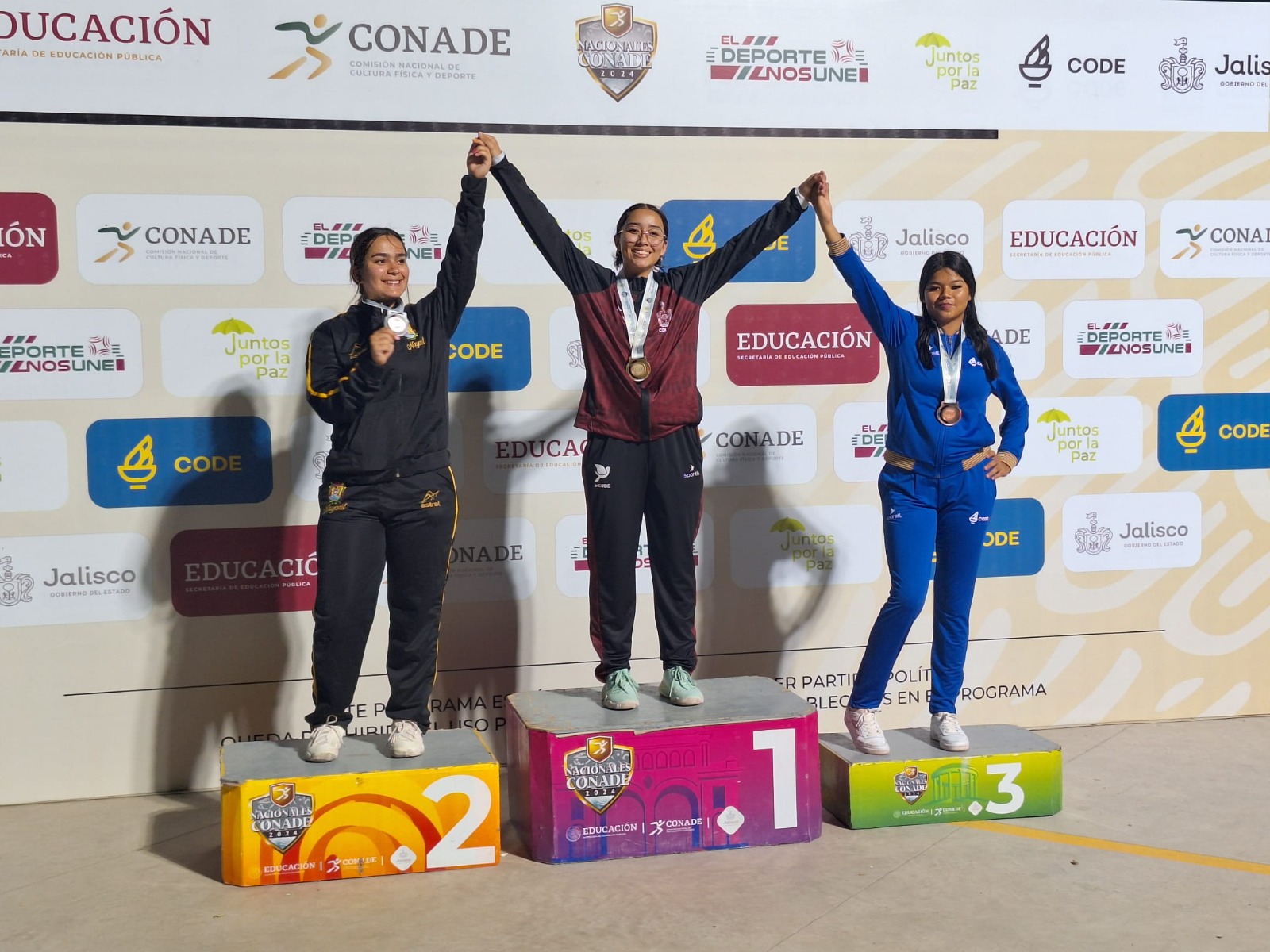 La frontenista colimense Andrea Paola Gallardo Martínez logró la hazaña de ganar medalla de oro en frontenis Juvenil C de manera invicta desde el Macro-regional de los Nacionales Conade 2024, en el evento que se desarrolla en el Polideportivo Revolución del Code en Guadalajara, Jalisco.