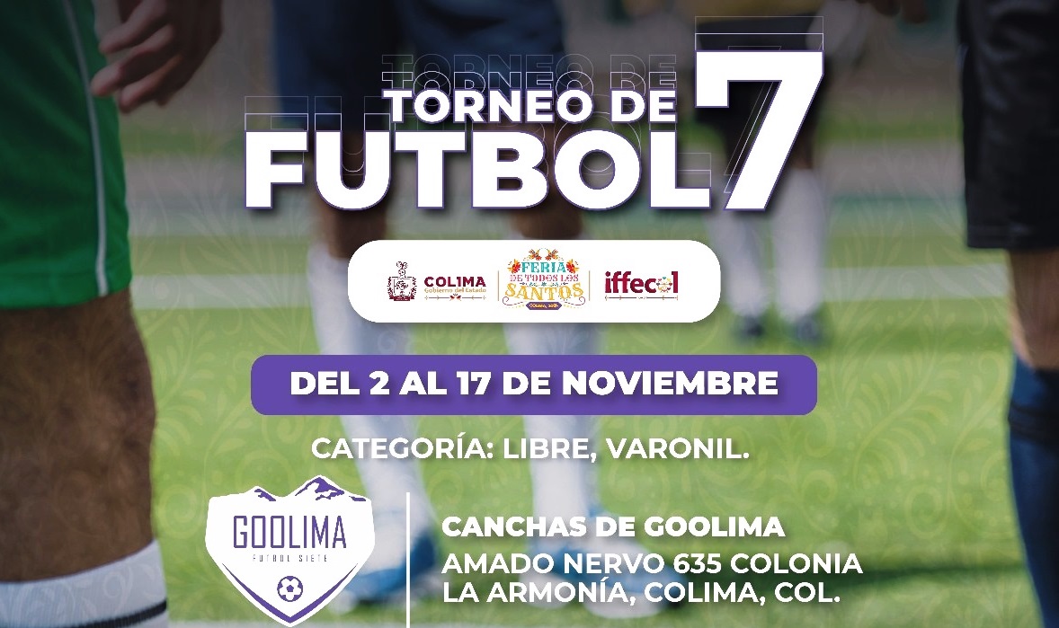 El Instituto de Fomento de Ferias y Exposiciones (Iffecol) del Gobierno del Estado de Colima invita a participar en el primer torneo de Futbol 7, en el marco de la Feria de Todos los Santos Colima 2024, en el que habrá una bolsa de premios en efectivo por 70 mil pesos para los dos equipos finalistas: 50 mil pesos al campeón y 20 mil pesos al subcampeón.