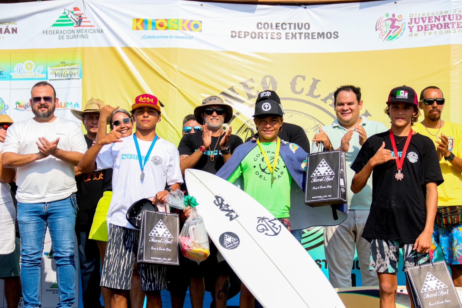 En la premiación también estuvieron presentes la directora de juventud y deporte del municipio de Tecomán, Ana Oceguera, además del regidor, David Grajales; el subdirector de deportes del Ayuntamiento Tecomense, Leobardo Rafael Valenzuela; además de César Félix Quintero, presidente de la Asociación de Surf del Estado de Colima; Georgina Hermosillo, administradora del Torneo Clásico de Pascuales; Francisco Granados, director de jueces; Juan Ramón González, representante de los Bikers, entre otros.
