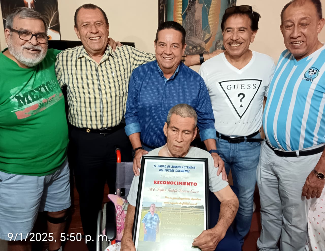 La directiva del Grupo de Amigos Leyendas del Futbol Colimense, visitó a Rafael «Quinicus» Romero, en su domicilio, para hacerle entrega de un reconocimiento por su trayectoria como futbolista y como asistente del cuerpo técnico y delegado de selecciones de la Asociación de Futbol de Estado de Colima.