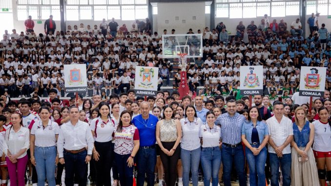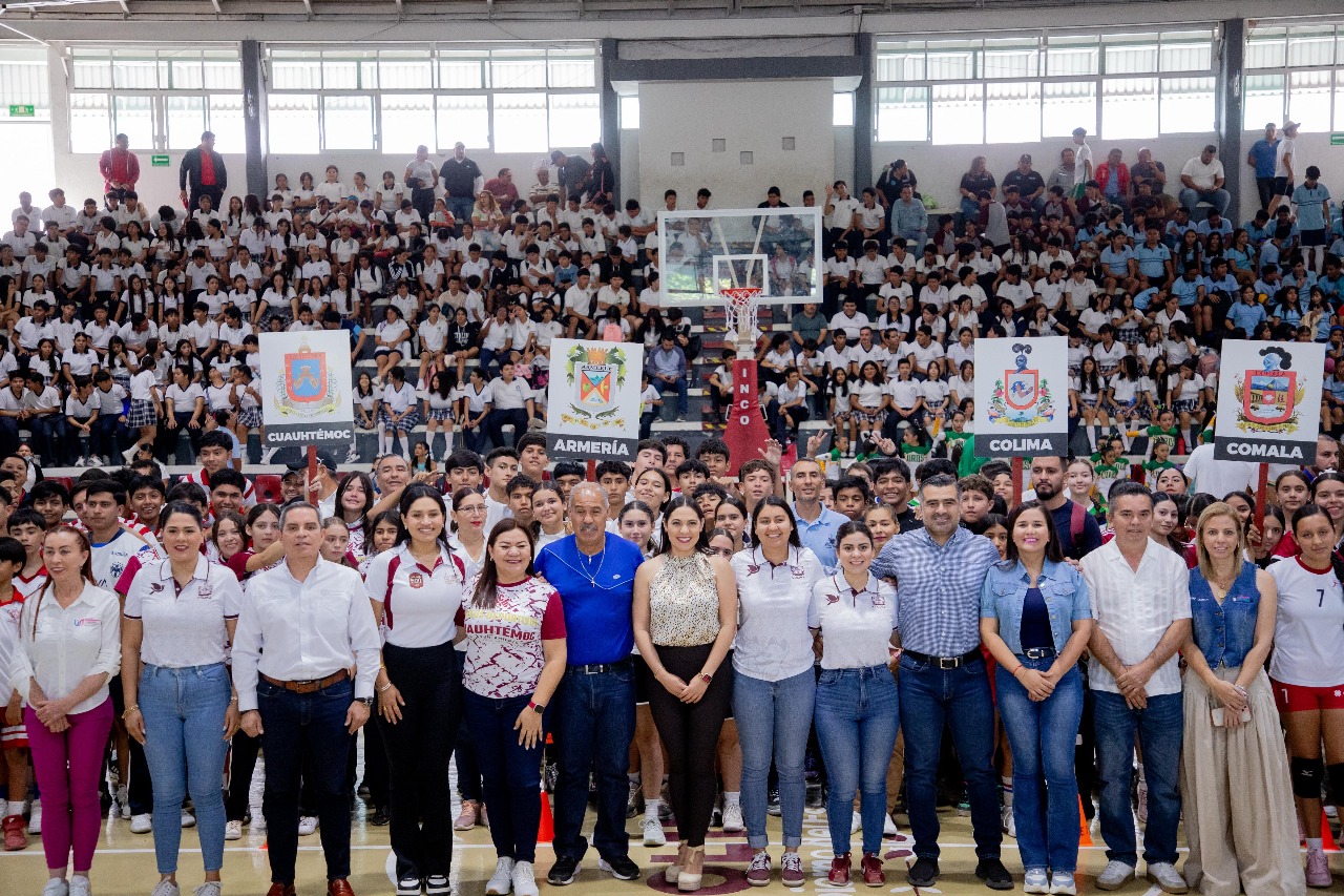 La gobernadora de Colima, Indira Vizcaíno Silva, inauguró la etapa estatal de los Juegos Deportivos Escolares en nivel secundaria, en la que participan 3 mil 654 alumnas y alumnos de los diez municipios de la entidad, en atletismo, basquetbol, futbol, balonmano, voleibol, bádminton y ajedrez, en evento que se realizó la mañana de este miércoles en el auditorio de la unidad deportiva ‘José María Morelos y Pavón’.