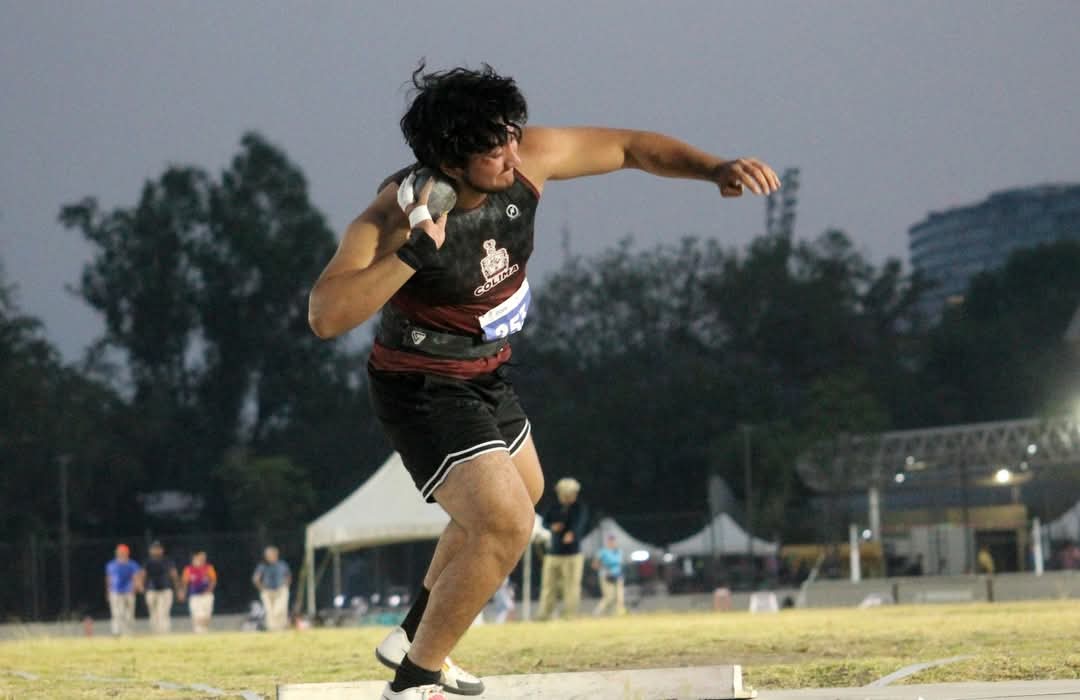 Los 11.70 metros, que marcó en el Estatal, Aguilar Palomares, se quedaron atrás desde el inicio de su participación, al impulsar la canica de acero a 11.89. Luego fue progresando: con 12.62, 12.73, 12.93, el penúltimo la dejó en 12.32, pero en el cierre animado por su entrenador Raymundo Salvatierra a ir con todo, buscando mejorar esas marcas, mandó la bala a los 13.81 metros, para ser felicitado de inmediato por los otros competidores.