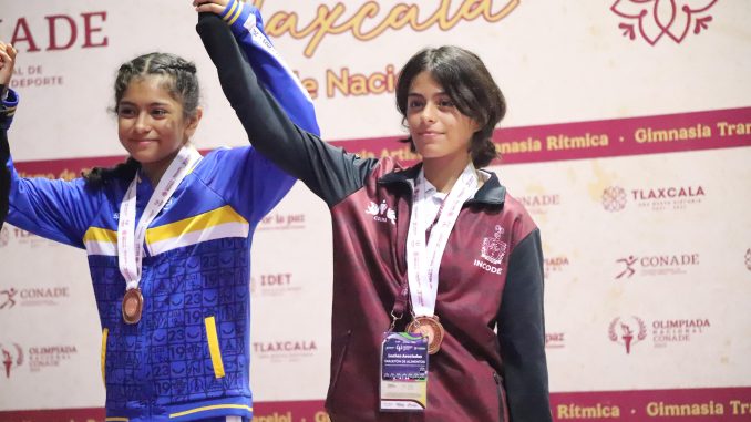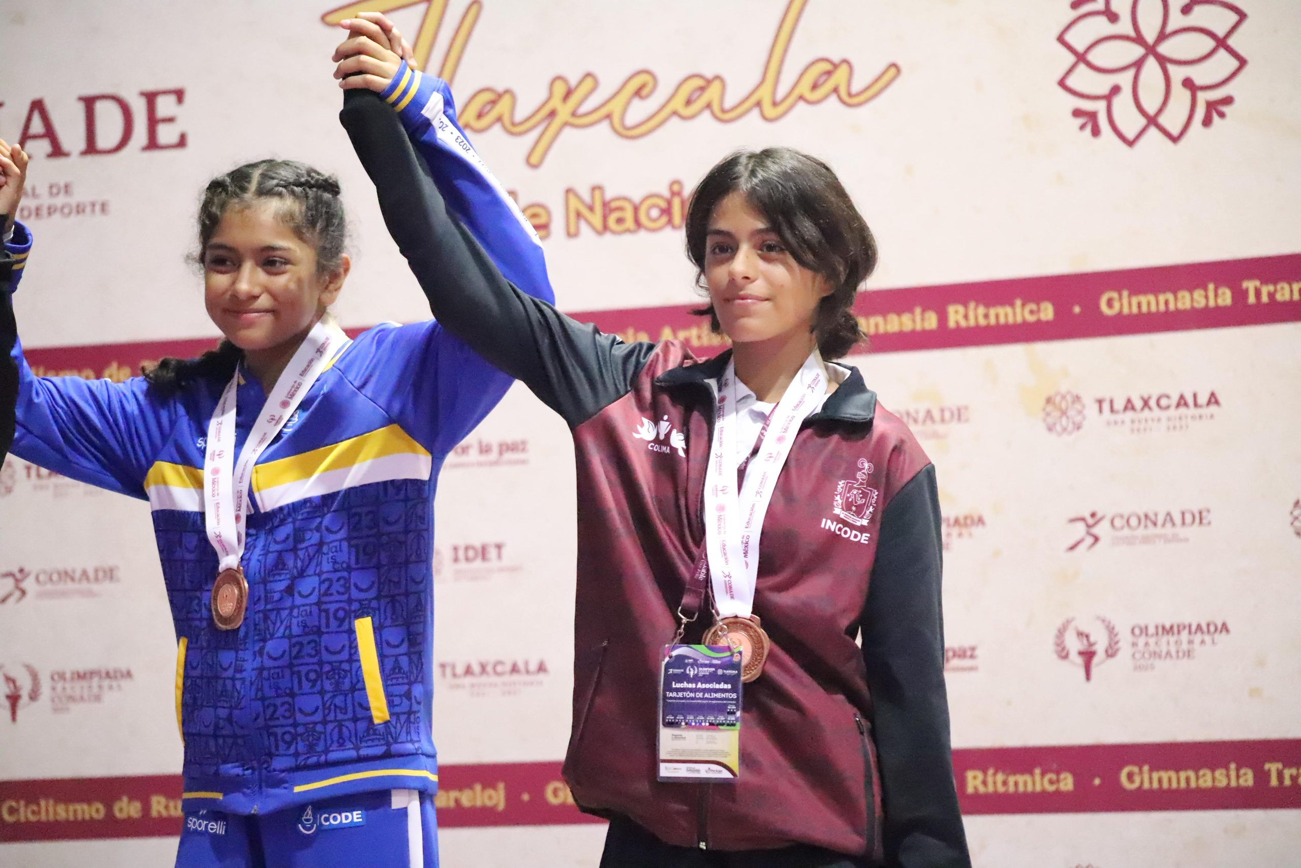 El estado de Colima obtiene medallas de plata y bronce con Isis Alí Juárez Lara en los 66 kg U20 y Rubí Estefanía Núñez Nieto, en los 42 kg U15, en la modalidad libre femenil de las luchas asociadas de Olimpiada Nacional Conade 2025, la tarde de este jueves en el Centro de Convenciones del Recinto Ferial de Tlaxcala.
